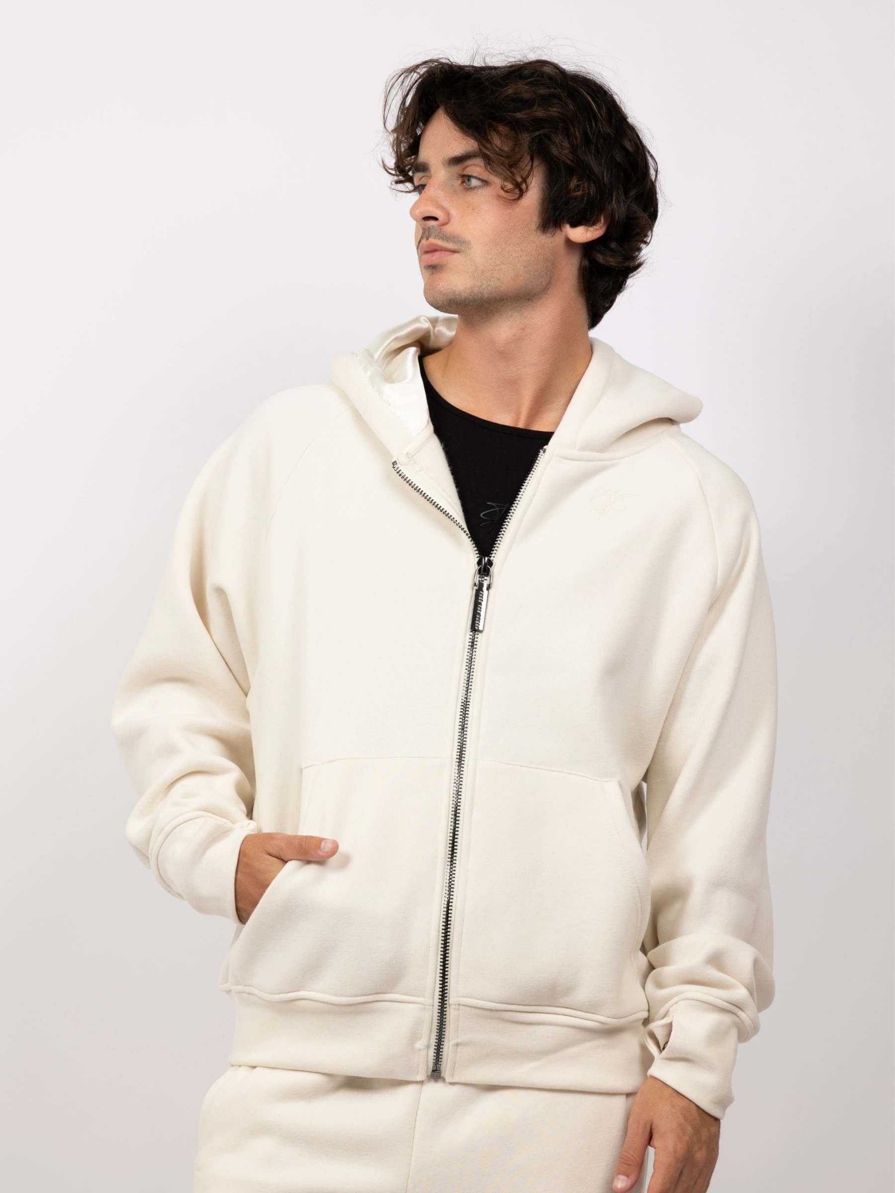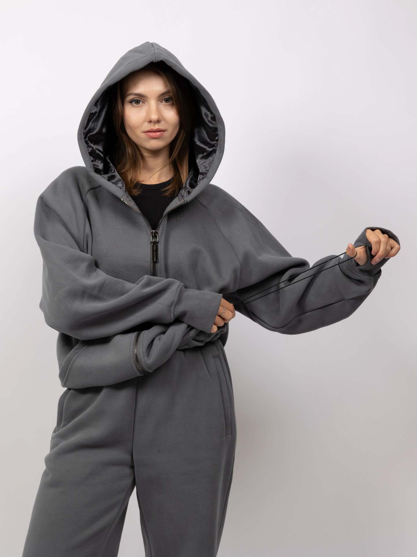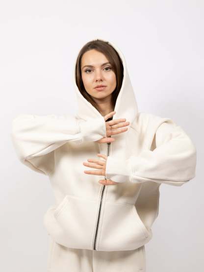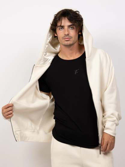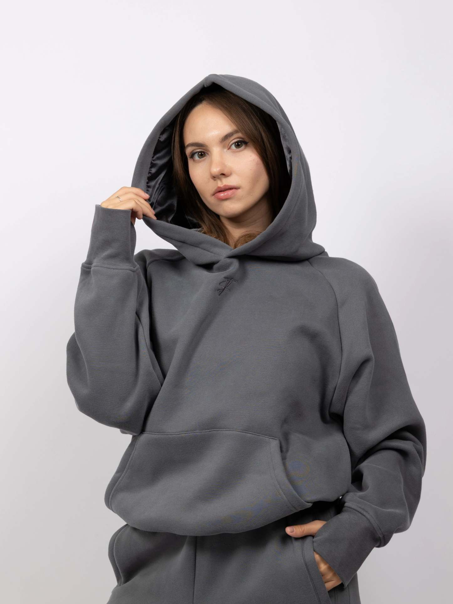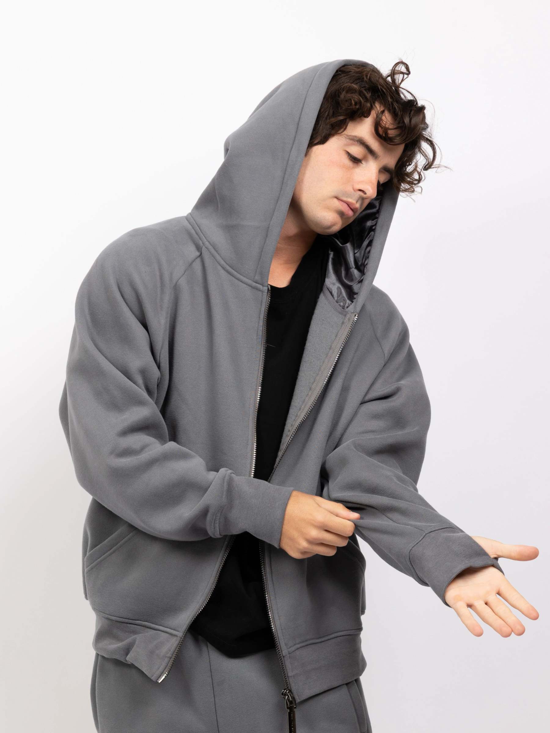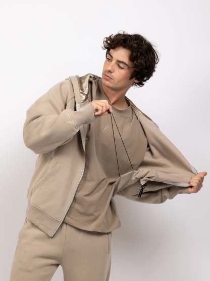 Designed for warmth-sensitive individuals and those prone to sensory overload, Aether delivers just enough weight to feel grounded—without the bulk. Other unique design elements include a cooling satin hood and an adjustable, cropped fit using hidden drawstrings. It's a clean, minimalist pullover that adapts to your body and your mood.