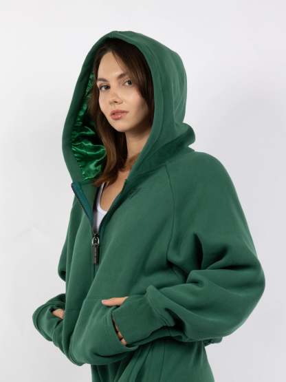 Cooling Satin-Lined Hood — stays cool and glides like your favorite silk pillowcase to minimize frizz, breakage, and color fade
