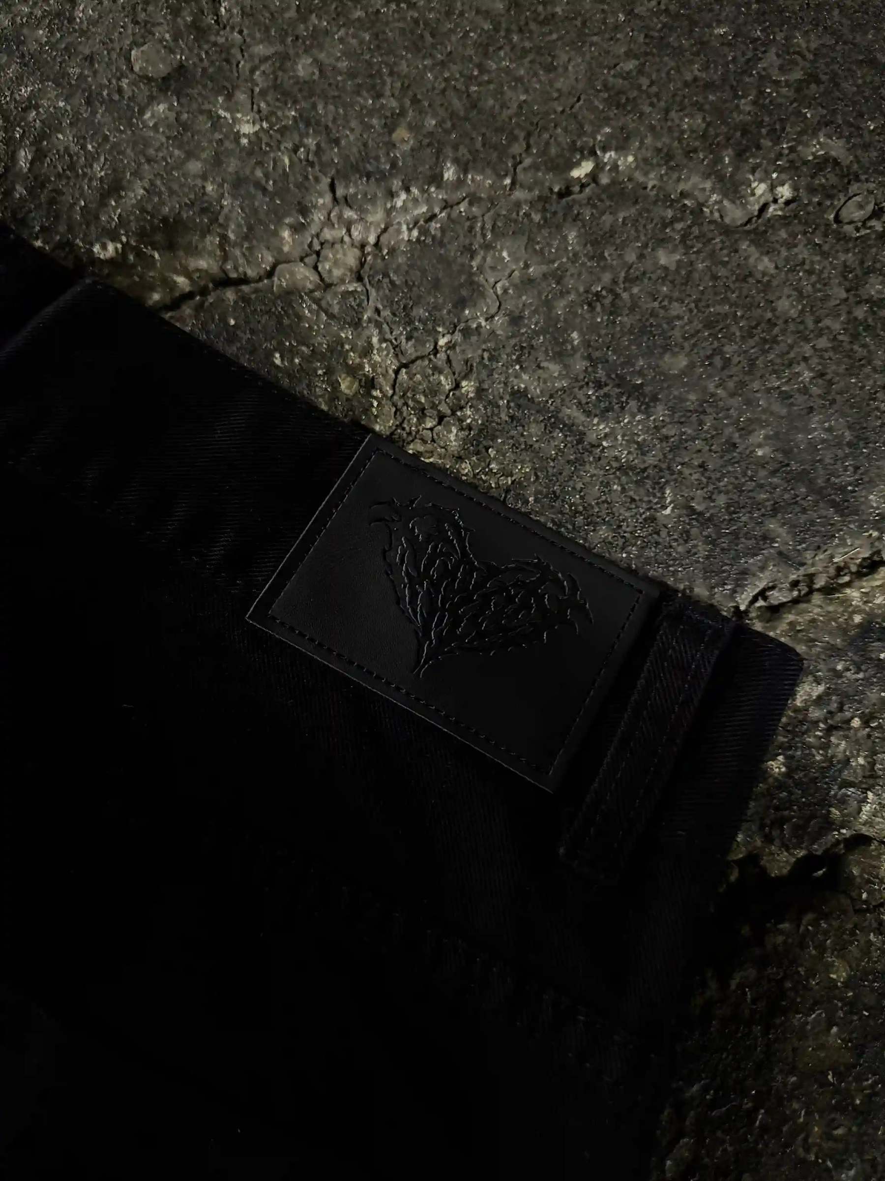 Back waist leather tab with embossed logo