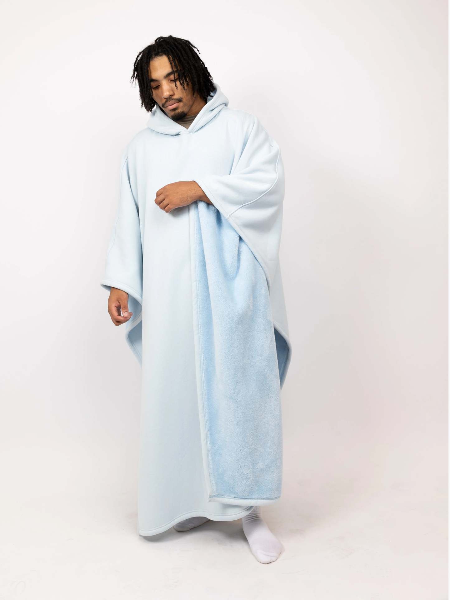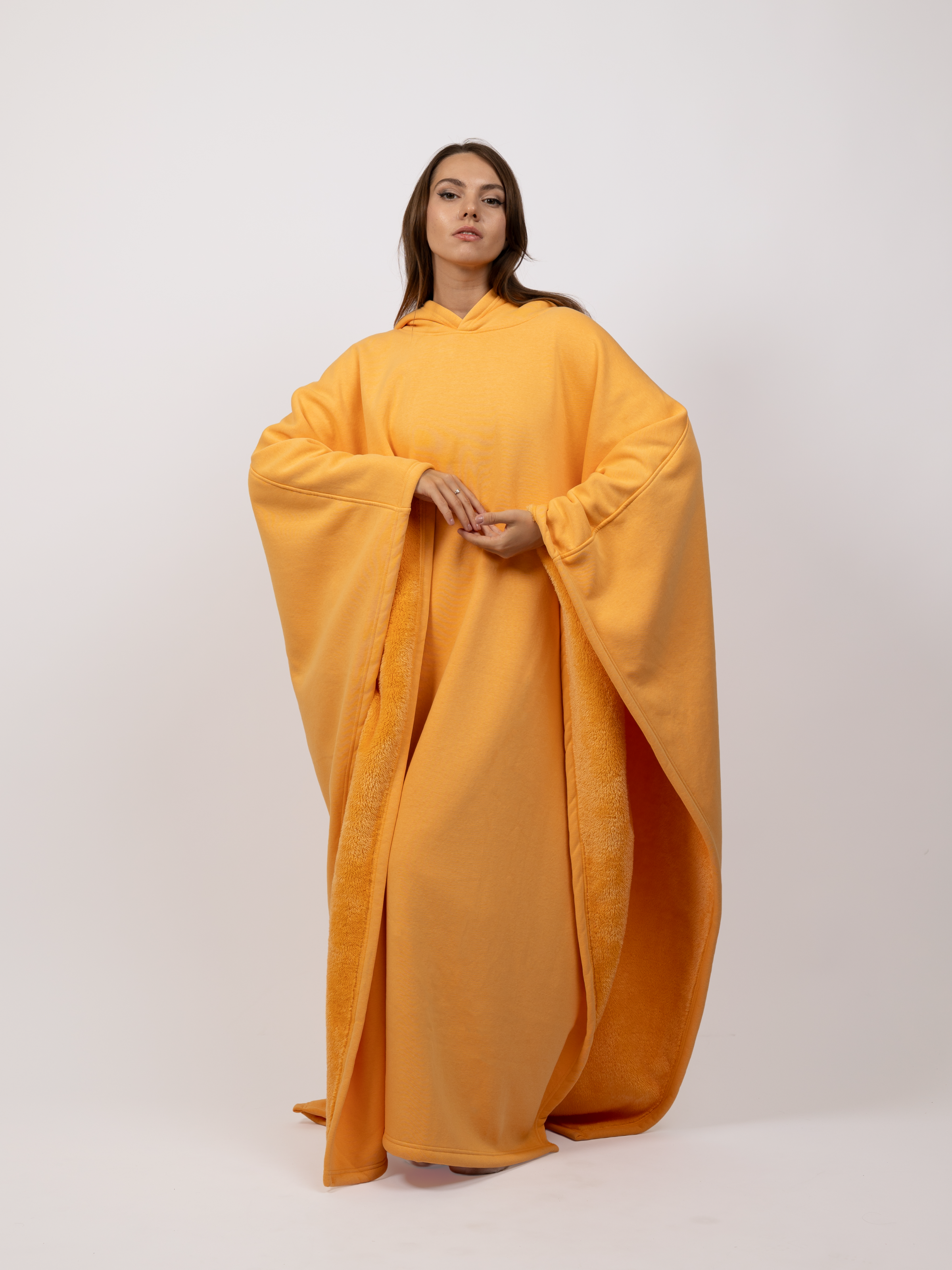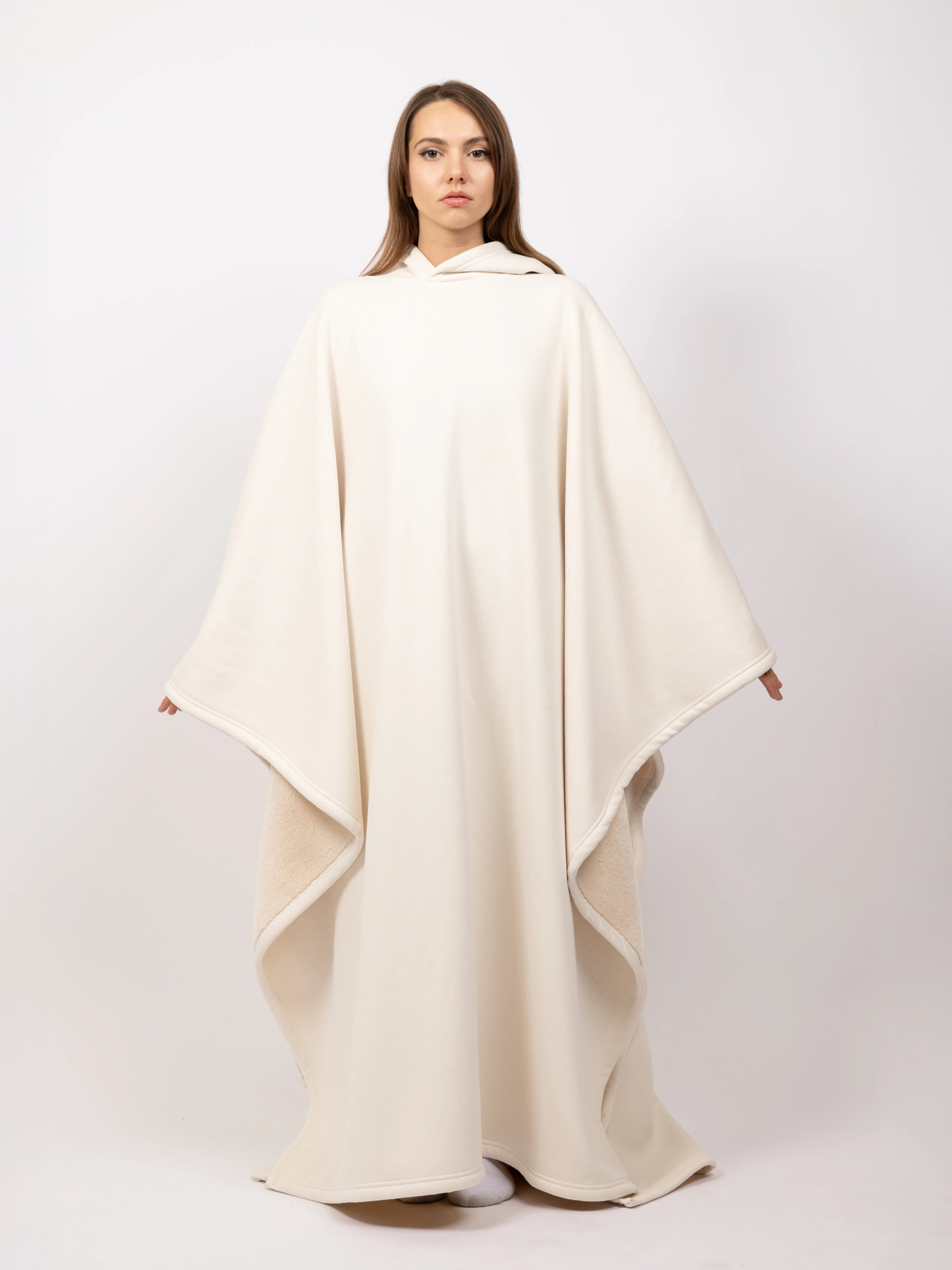 Crafted to accommodate everyone, its inclusive, open design comfortably fits sizes from XS up to 6XL, making it truly one-size-fits-all. Whether at home or on the go, the Eden Hoodie is designed to enhance comfort, provide warmth, and deliver a sense of security wherever you are.