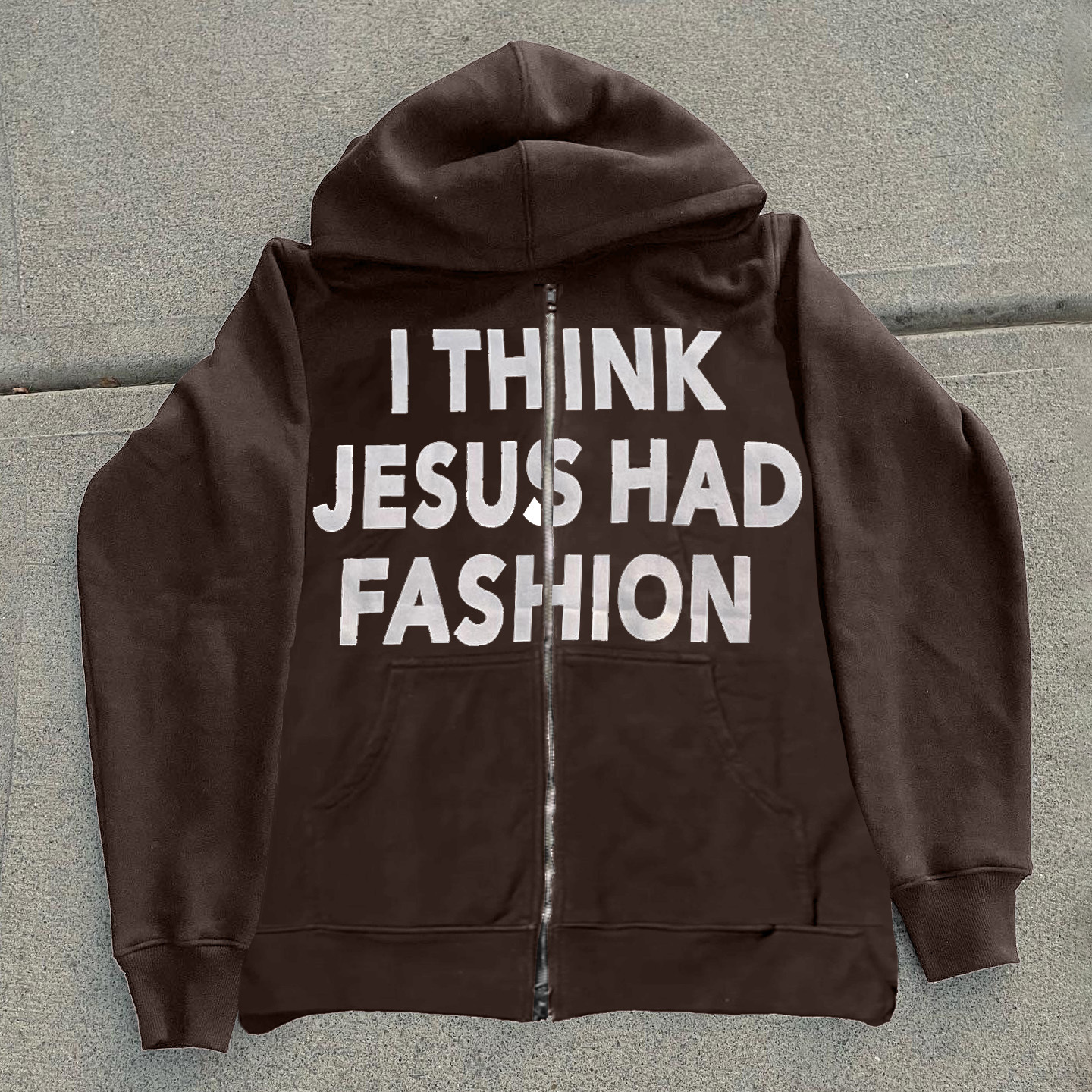 I Think Jesus Had Fashion Print Long Sleeve Zipper Hoodies