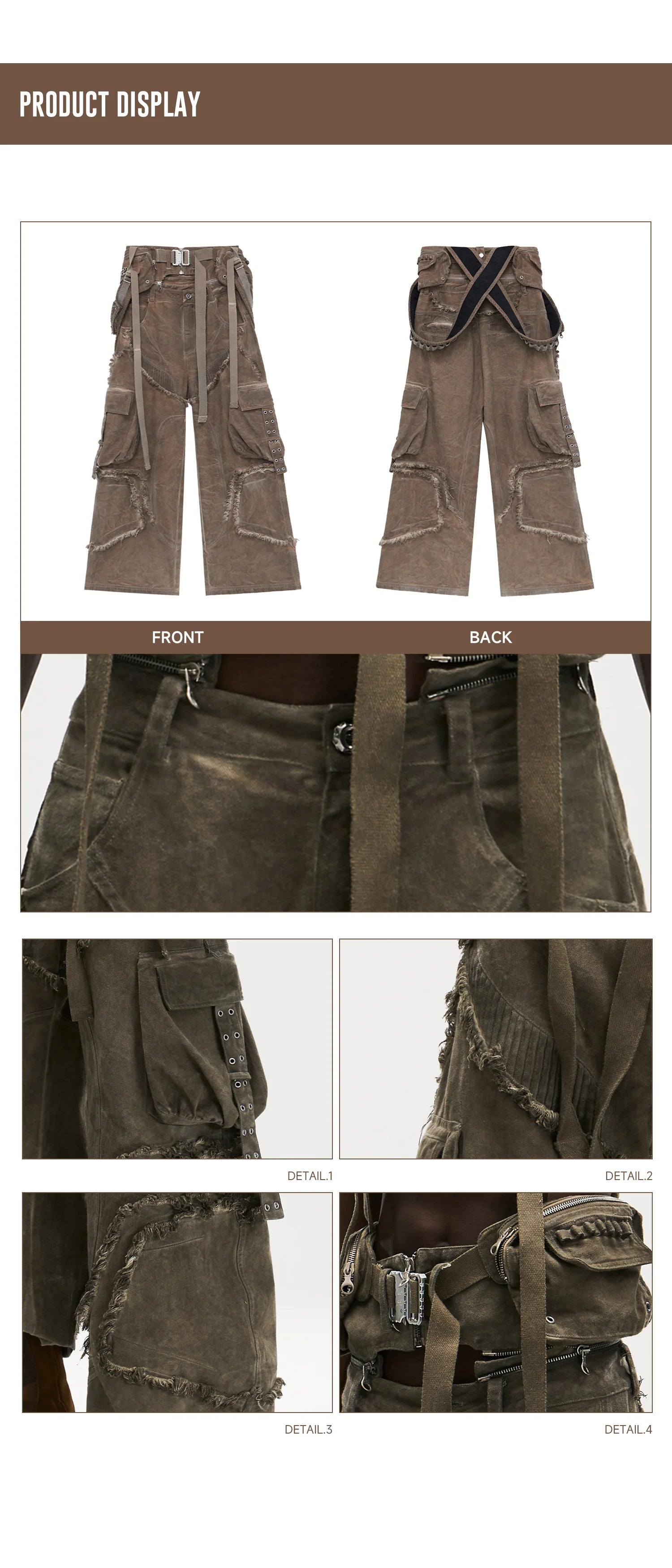 Personsoul Detachable Tactical Distressed Cargo Pants
