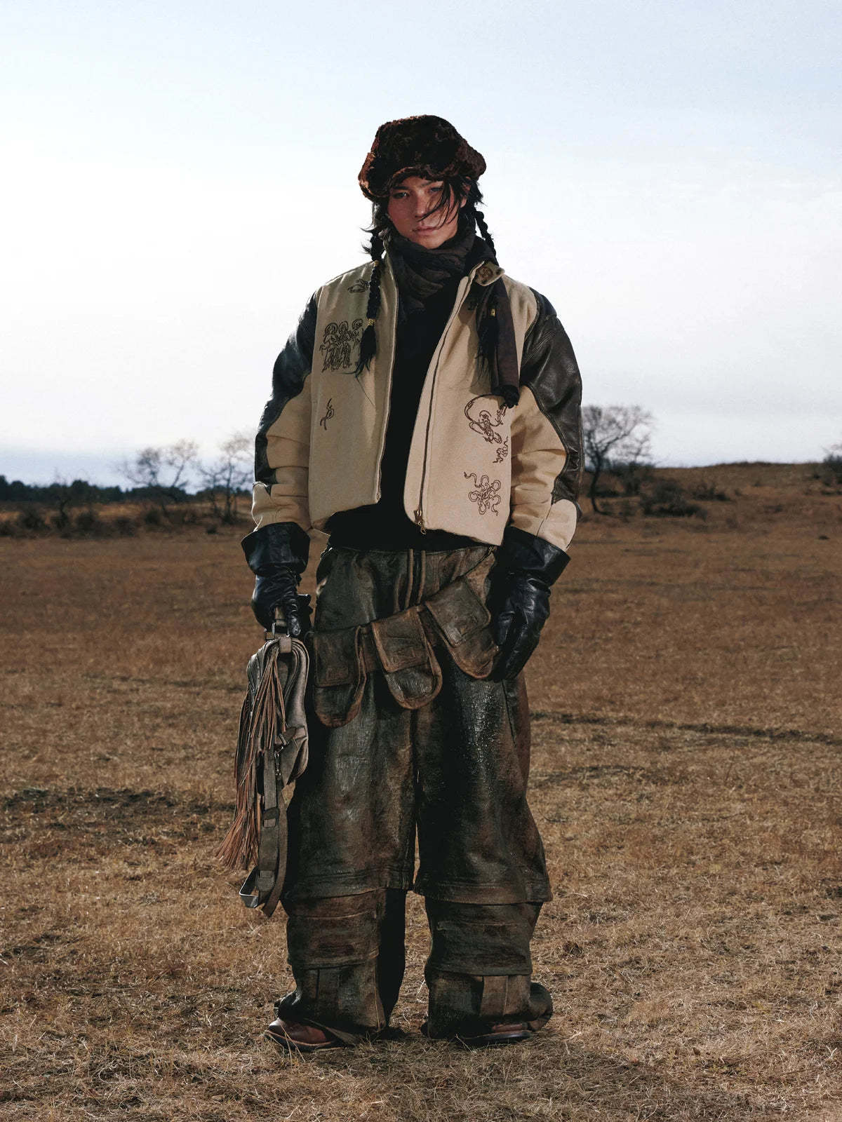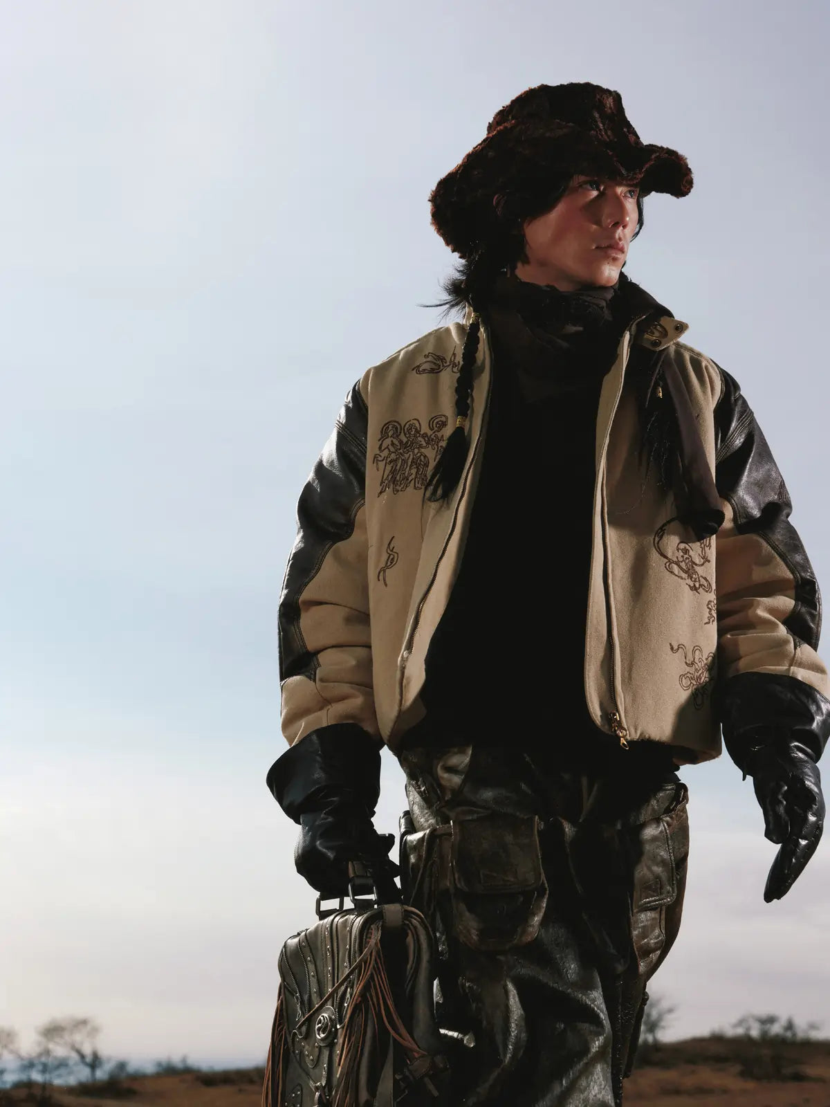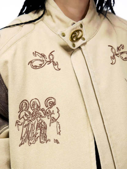 Personsoul Leather Patchwork Cotton Jacket