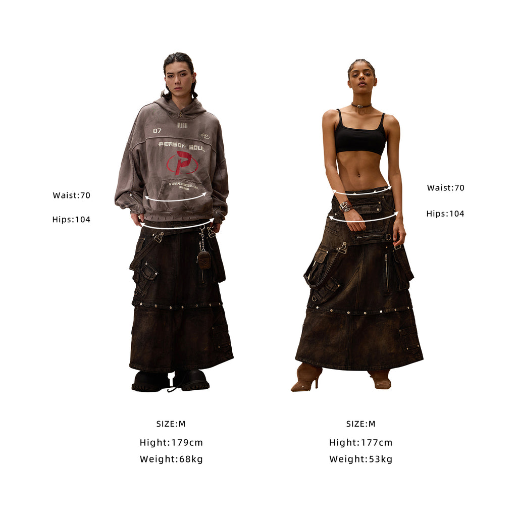 Personsoul Mud Maxi Denim Dungarees Skirt