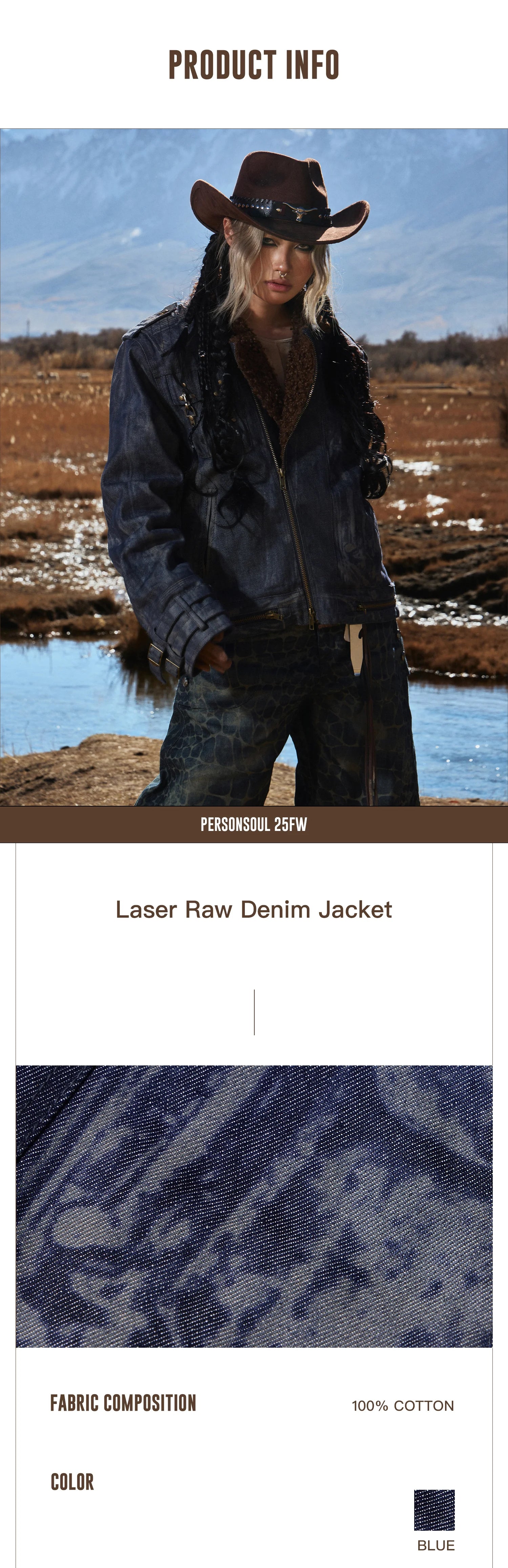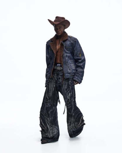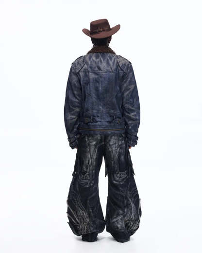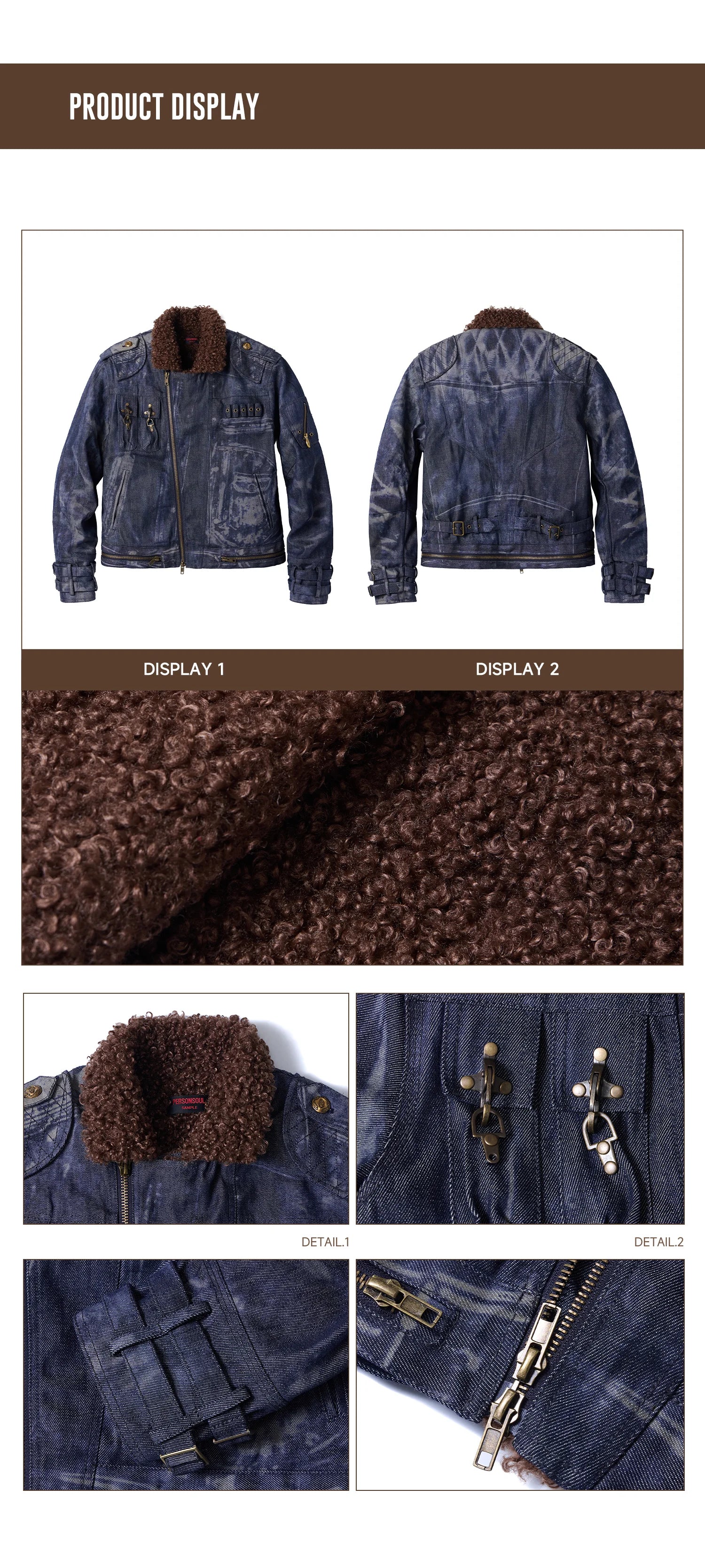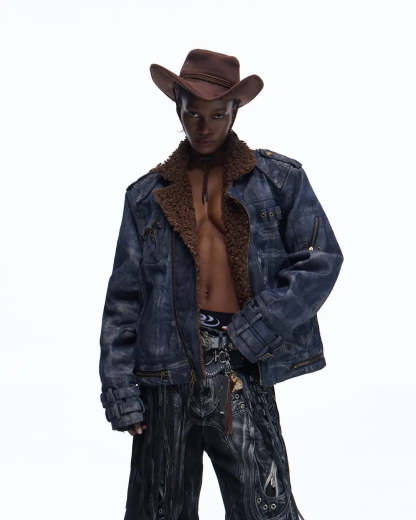 Personsoul Sherpa Lined Raw Denim Jacket