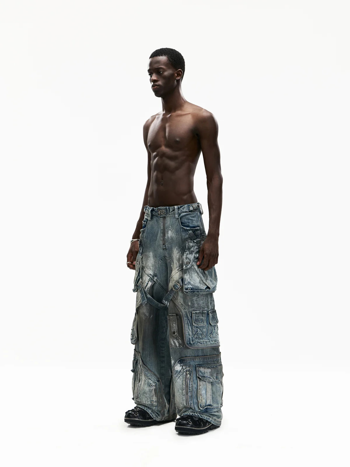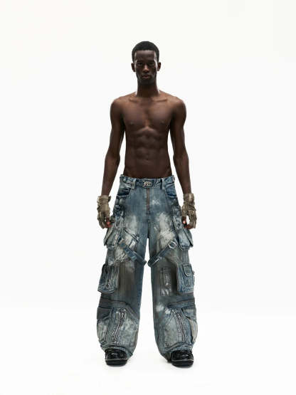 Personsoul White Stain Graffiti Cargo Pants