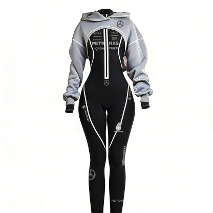 Red Racing-Inspired Hooded One-Piece Suit with Full-Zip Design