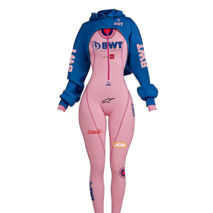Red Racing-Inspired Hooded One-Piece Suit with Full-Zip Design